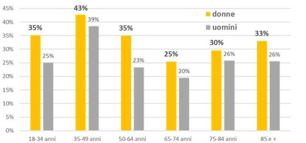 La sicurezza economica costituisce un prerequisito fondamentale per la salute, e le disuguaglianze di reddito producono effetti concreti e misurabili sul benessere delle persone. I dati lo confermano: il 42% delle donne dichiara uno stato di salute non buono, a fronte del 30% degli uomini. I sintomi depressivi risultano più frequenti tra le donne (11%) rispetto agli uomini (7%), e le donne che riferiscono almeno 14 giorni al mese di cattiva salute psicologica sono il doppio degli uomini (15% contro 8%).